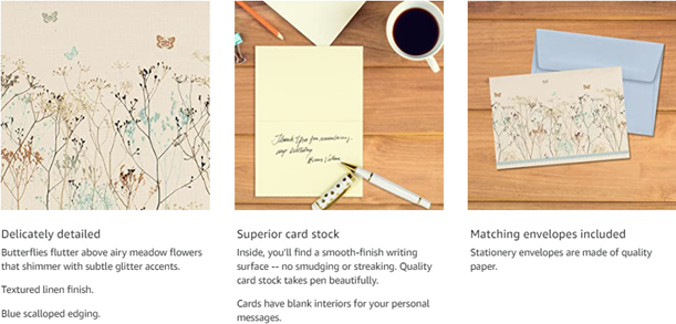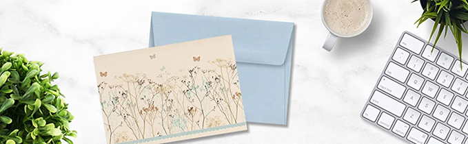 Premium boxed stationery set comes with 14 note cards and 15 envelopes