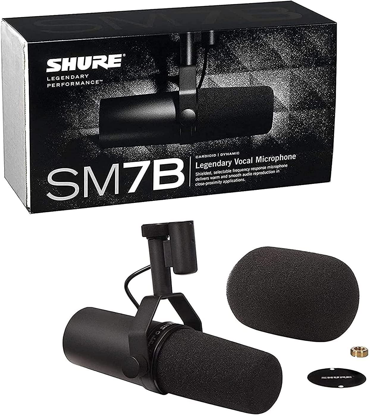 Shure SM7B Vocal Dynamic Microphone for Broadcast, Podcast & Recording, XLR Studio Mic for Music & Speech, Wide-Range Frequency, Warm & Smooth Sound, Rugged Construction, Detachable Windsc