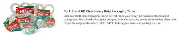 Meets postal regulations for shipping tape