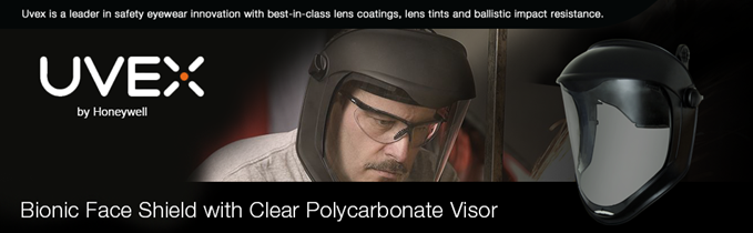 Uvex Bionic face shield with clear polycarbonate Visor (S8500) protect your face from impacts, splashes and airborne debris with the Uvex Bionic face shield with clear polycarbonate Visor. The full Shield design offers extended top-of-head coverage plus built-in chin protection, and the clear polycarbonate Visor provides excellent Optics. The visor is replaceable and multiple tint options are available. The construction contains No metal parts to ensure safety in electrical work environments. From a comfort standpoint, this face shield features cell foam padding at the back and a dual-position setting to customize the fit. It is also lightweight and ergonomically designed for optimum balance during wear. This safety shield Must Be worn overtop of other safety eyewear, and fits well with most goggles and respirators. Meets ANSI Z87.1-2010 and CSA Z94.3 standards
