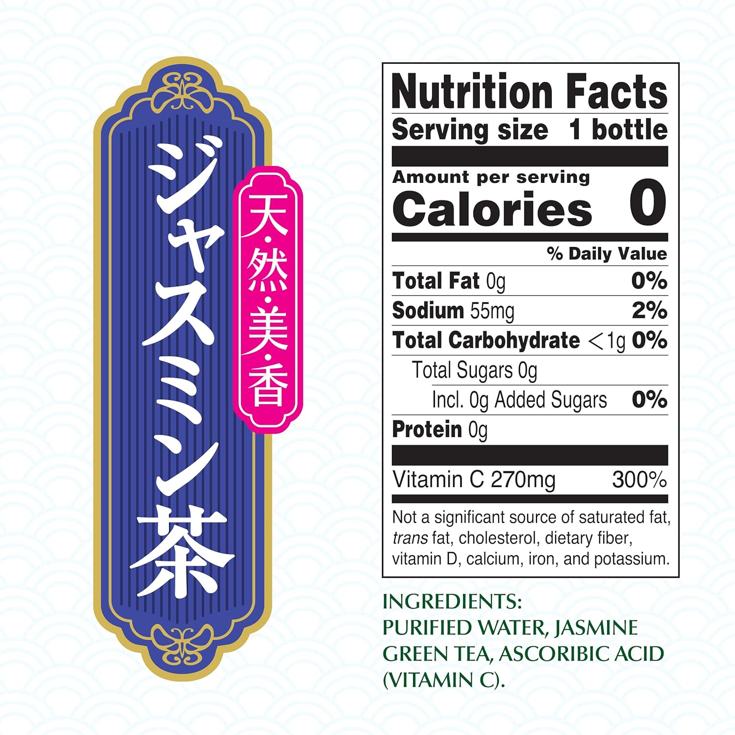 • JASMINE GREEN TEA: A deliciously fragrant bend of premium green tea with delicate jasmine blossoms picked at the peak of their fragrance. Naturally caffeinated with approximately 60 mg per bottle.