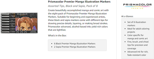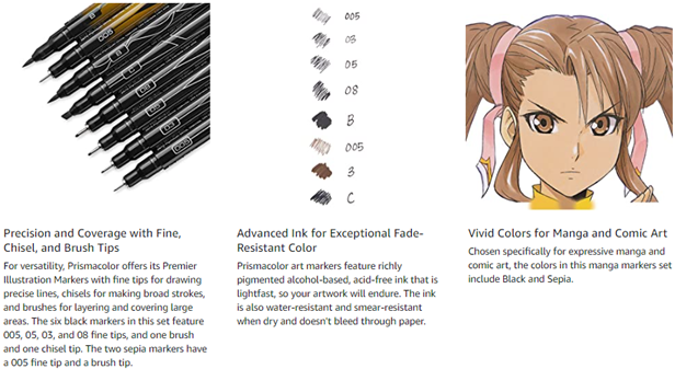 • Tip types and colors selected specifically for drawing flawless Manga artwork