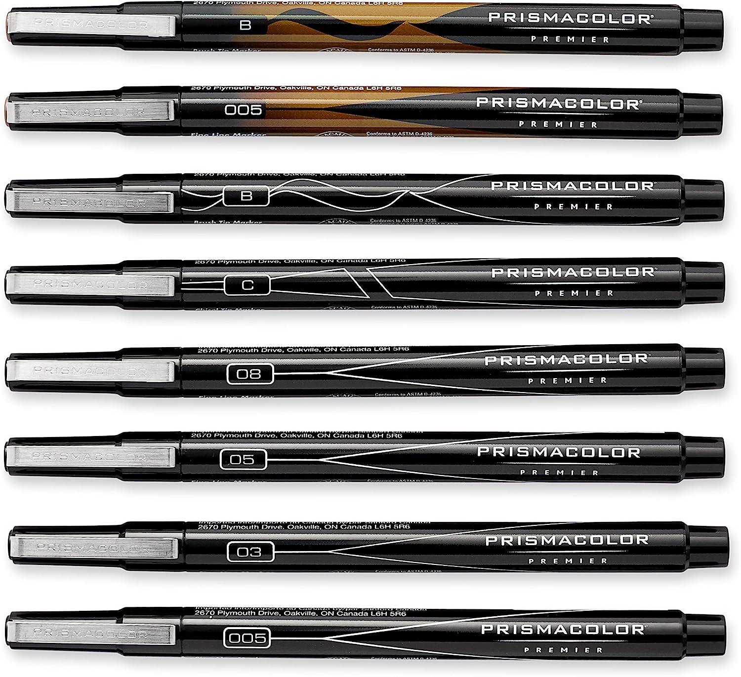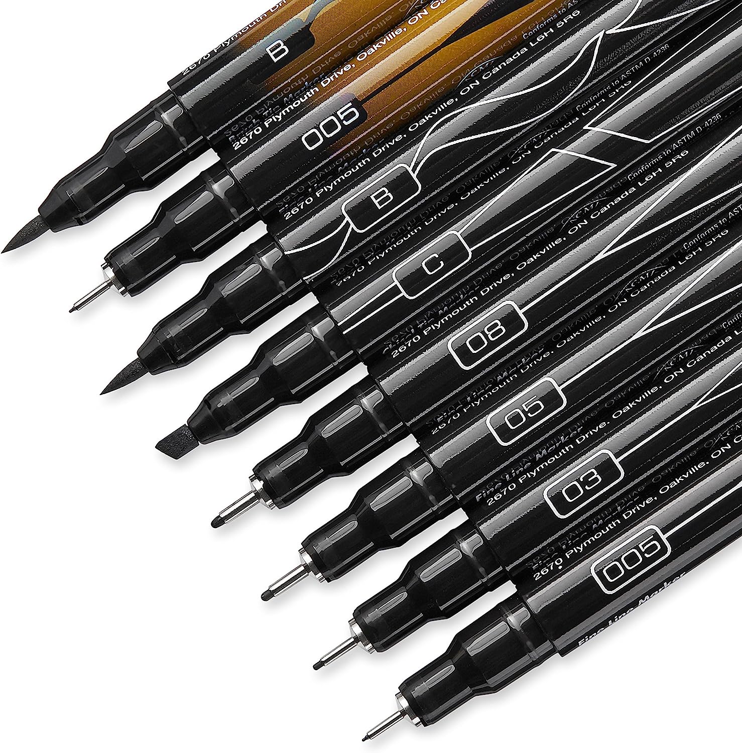 • 6 Black markers with 005, 05, 03 and 08 fine tips plus brush and chisel tips