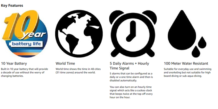 | Special features | Alarm, World Time |
