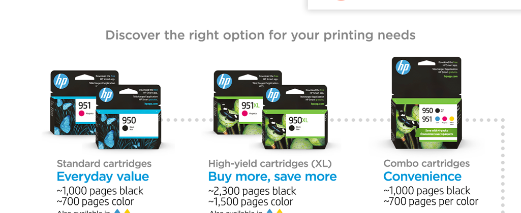 Expect professional-quality documents when you use Original HP printer ink and toner cartridges. Dependable performance, consistent page yields, and standout results are the norm – something the competition can’t match. With Original HP Ink and Toner cartridges, you can also avoid costly reprints and help ensure the flawless performance you expect from your HP printer.