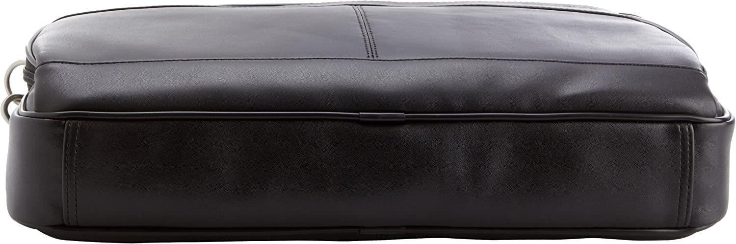 This Samsonite slim brief is crafted of genuine leather. It features a front, pocket organization for all of your business needs and padded, removable shoulder strap adjusts for convenience. The smart pocket slides over upright handles for easy mobility. Fits a 15.6" Laptop computer. Body dimension: 15.75 x 11.6 x 2.5 inches, Overall Dimension: 15.75 x 11.6 x 2.5 inches.