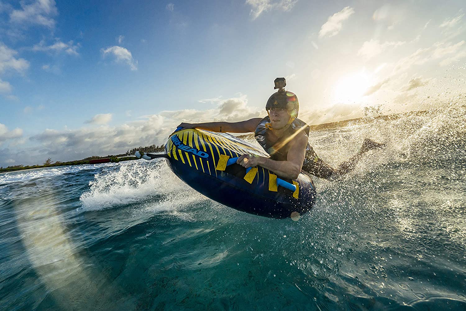 AIRHEAD STRIKE is an incredible value for a fully covered deck tube! It's a 1 rider 54 in. (deflated) round towable with 4 nylon wrapped handles and neoprene knuckle guards. The RF welded PVC bladder is fully encased by a durable double-stitched nylon cover. STRIKE is equipped with a Speed Safety valve for easy inflation and deflation, covered flap for safety.