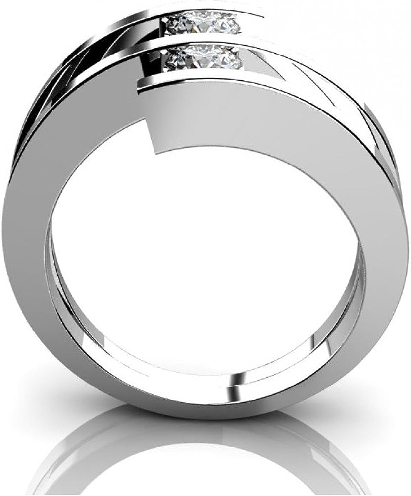 Madina Jewelry 0.60 ct Two Round Cut Diamonds Anniversary Ring in 14 kt White Gold