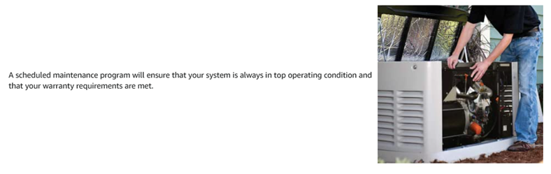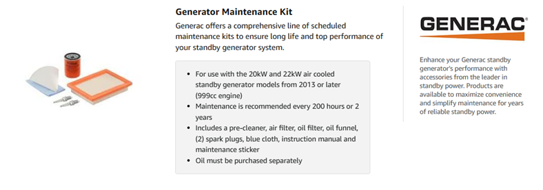 • Scheduled maintenance kit is for standby home generators