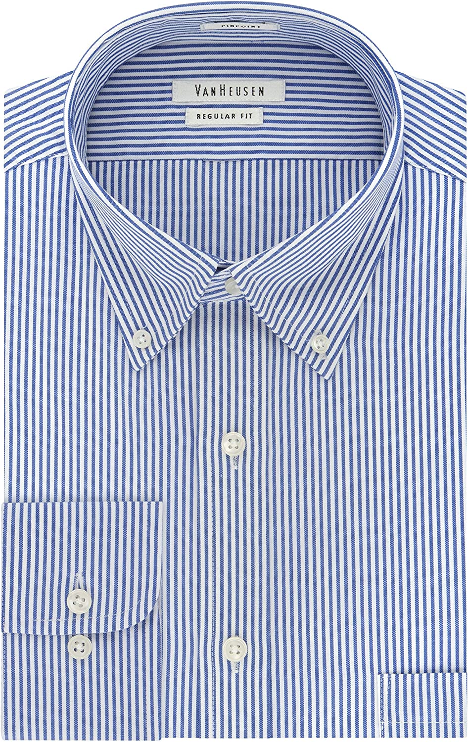 Pinpoint stripe. Van Heusen regular fit long sleeve dress shirt with a stripe pattern.