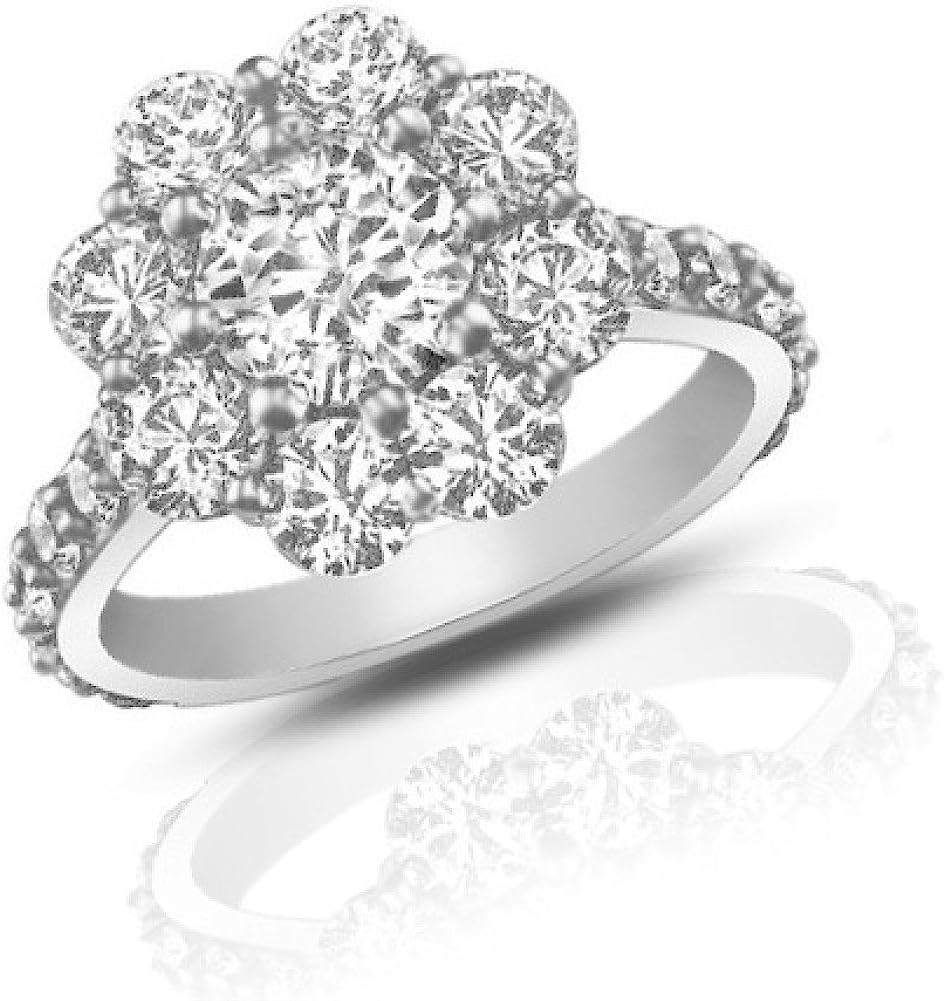 Madina Jewelry 2.90 ct Round Cut Diamond Cluster Engagement Ring in Platinum