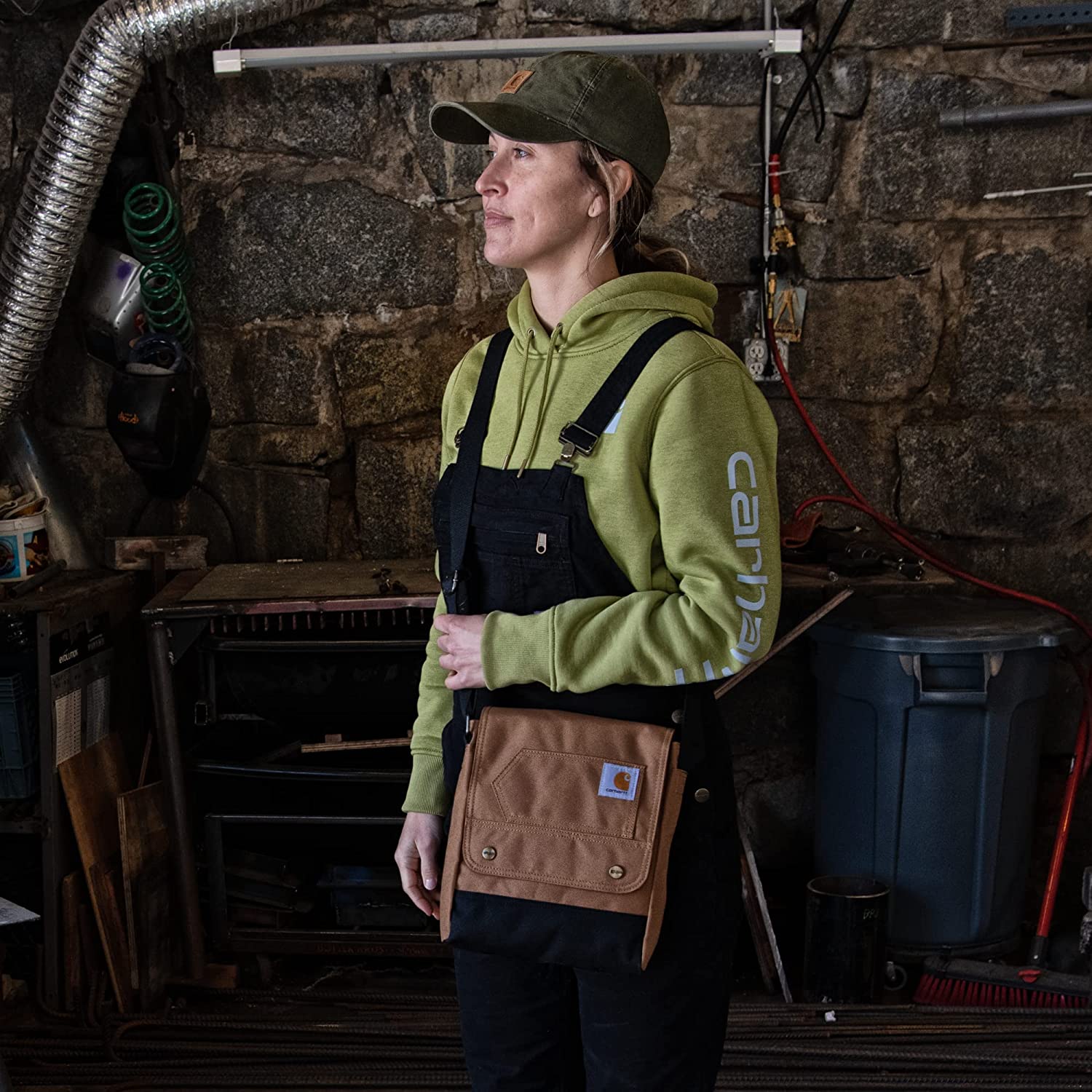 Conquer the day with the Carhartt Legacy Women's Cross Body Carry All, the bag that's built strong like you. From work to home and everywhere in between keep your hands free to tackle anything that comes your way. Constructed of 600D rugged Poly with Rain Defender durable water repellent. With a main compartment and 4 additional pockets this carry all is big enough to tote the essentials without being overbearing. Use the snap closure to keep your things secure. Cross body strap adjusts to fit all shapes and sizes. Additional Details: metal hardware, Carhartt logo patch. Carhartt Work Bags, Packs & Gear - as developed and sold by 5 Horizons Group..