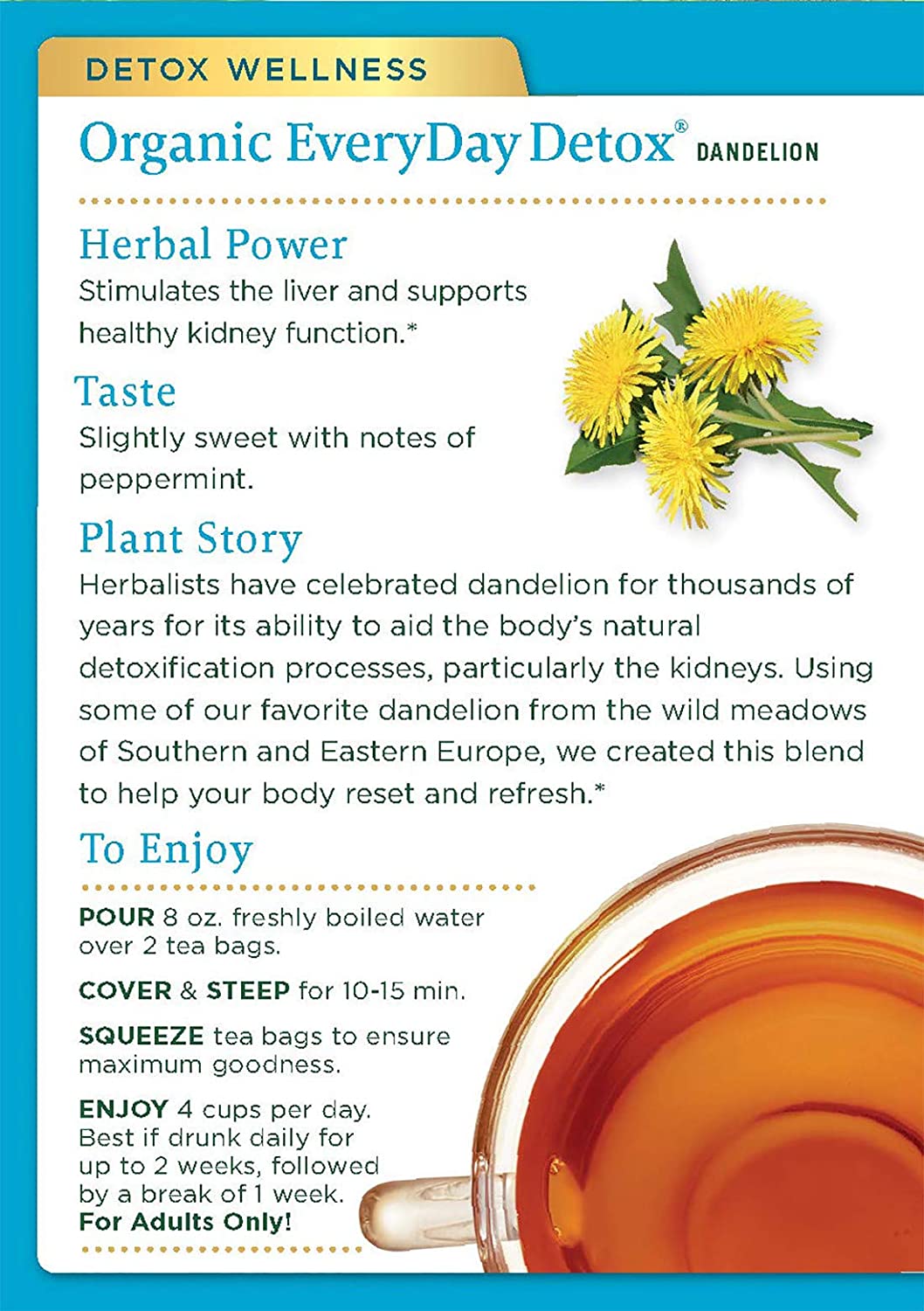Using some of our favorite dandelion from the wild meadows of Southern and Eastern Europe, we created this EveryDay Detox tea to help your body reset and refresh.*