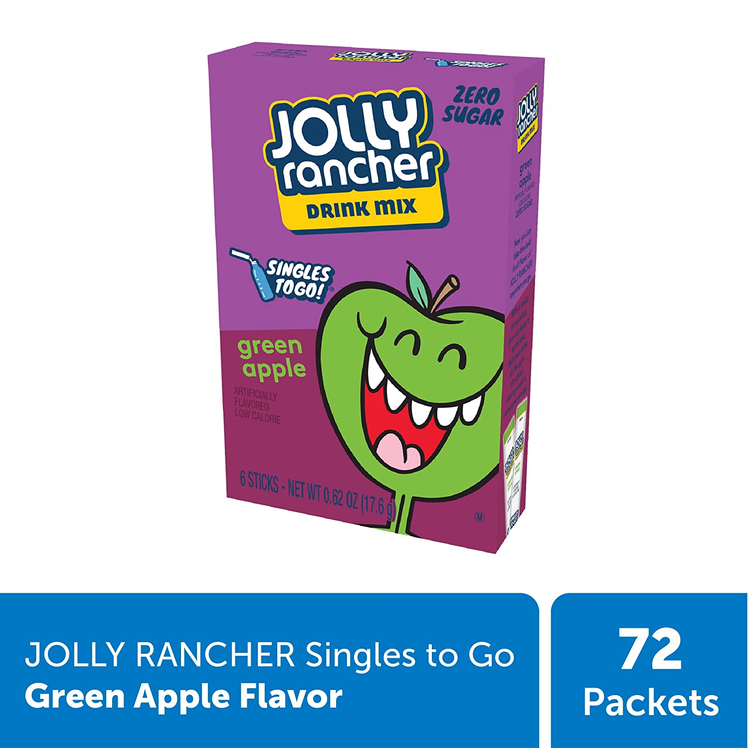 Jolly Rancher Singles To Go Powdered Drink Mix, Green Apple, 72 Total Servings, Sugar-Free Drink Powder, Just Add Water, 0.62 Ounce (Pack of 12)