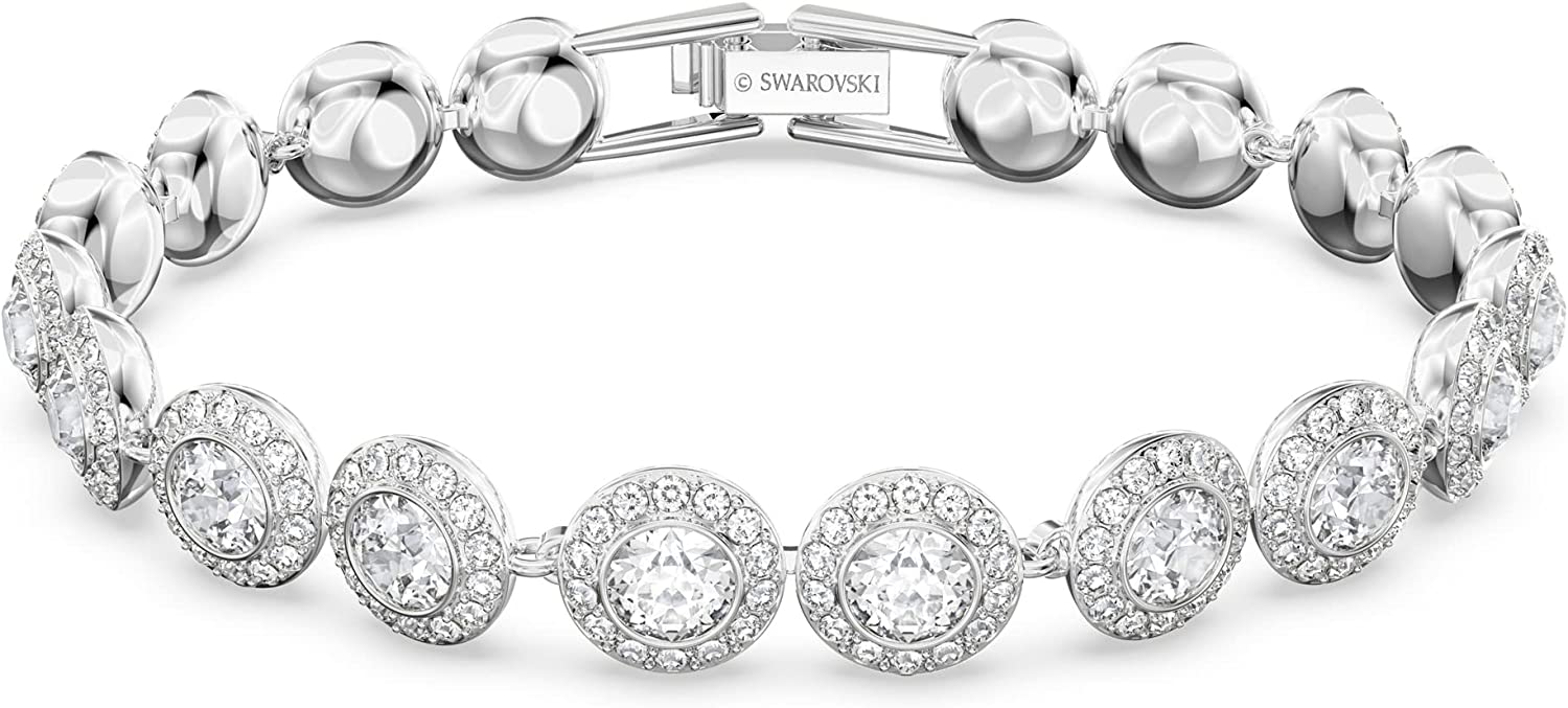 Items delivered: 1 x Swarovski angelic collection tennis bracelet for women, 6.7 inch rhodium plated chain, lined with sparkling white crystal stones, with Swarovski bracelet box