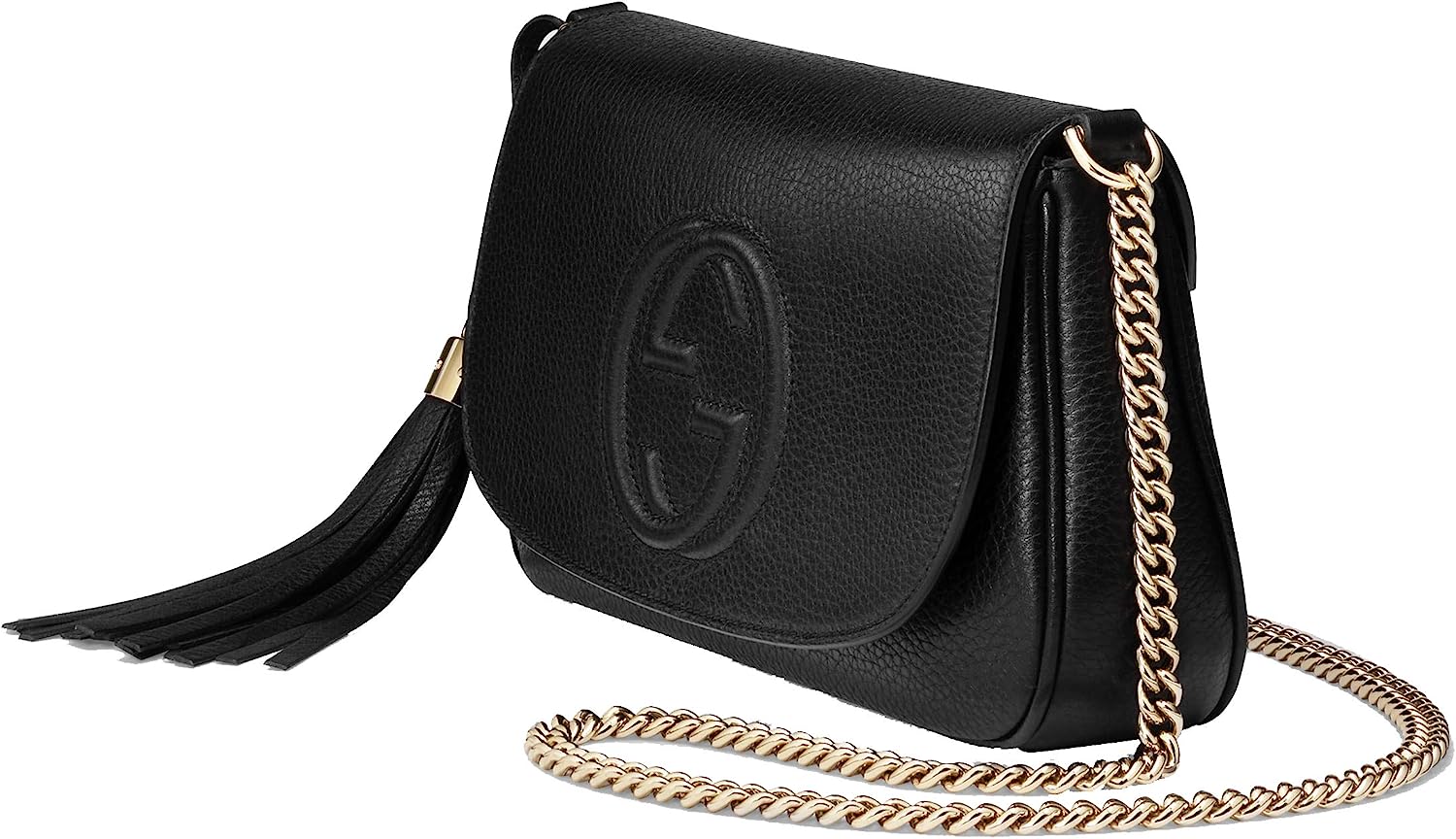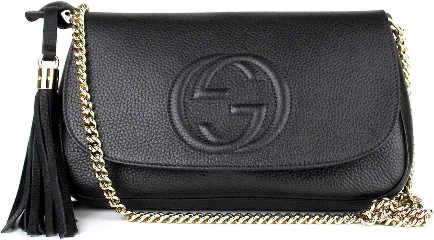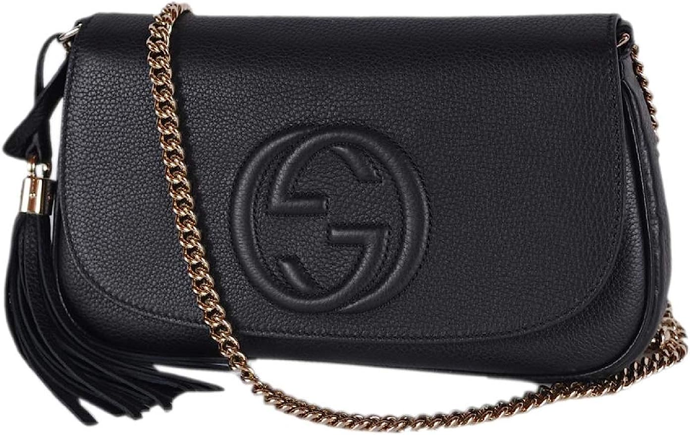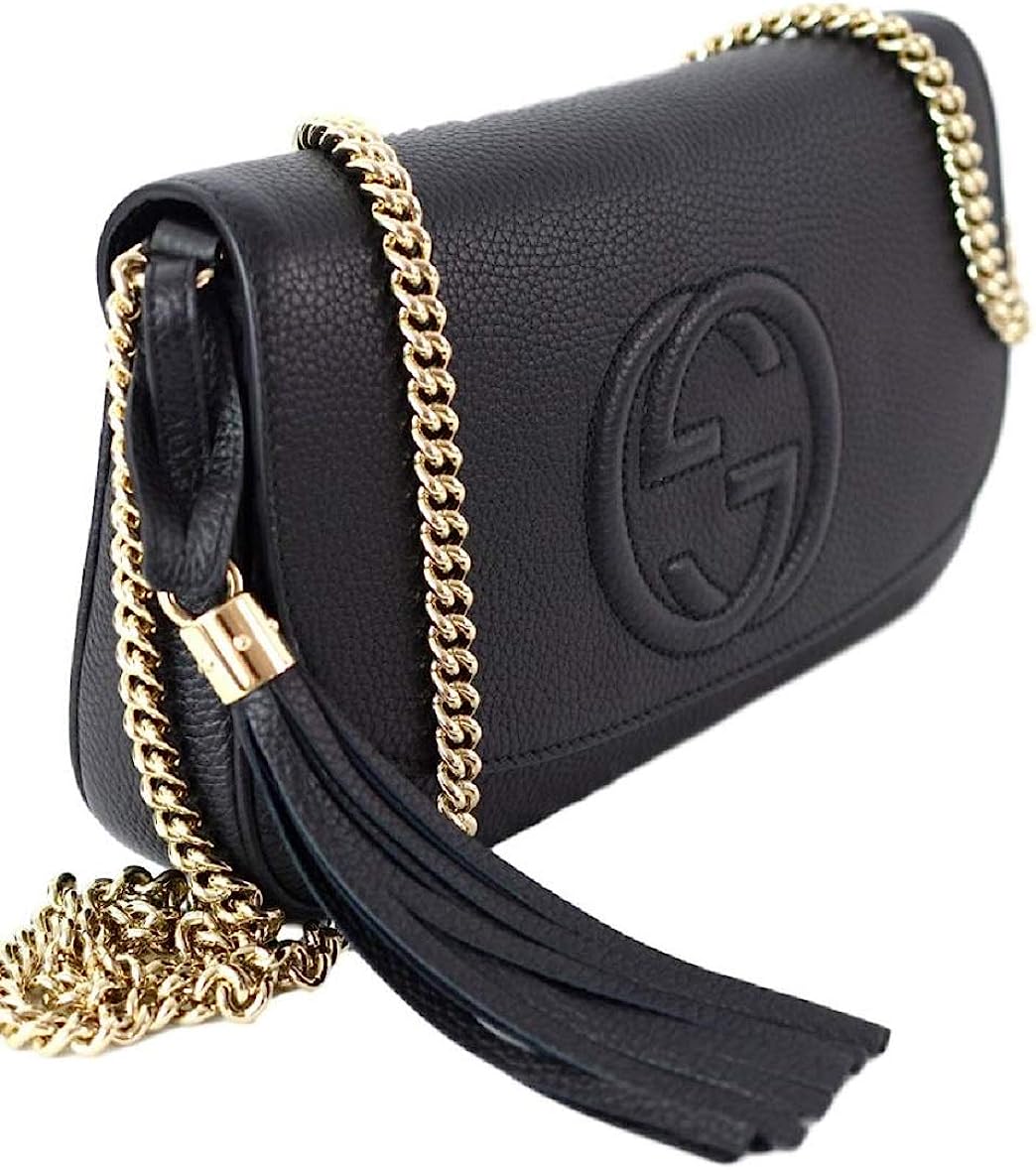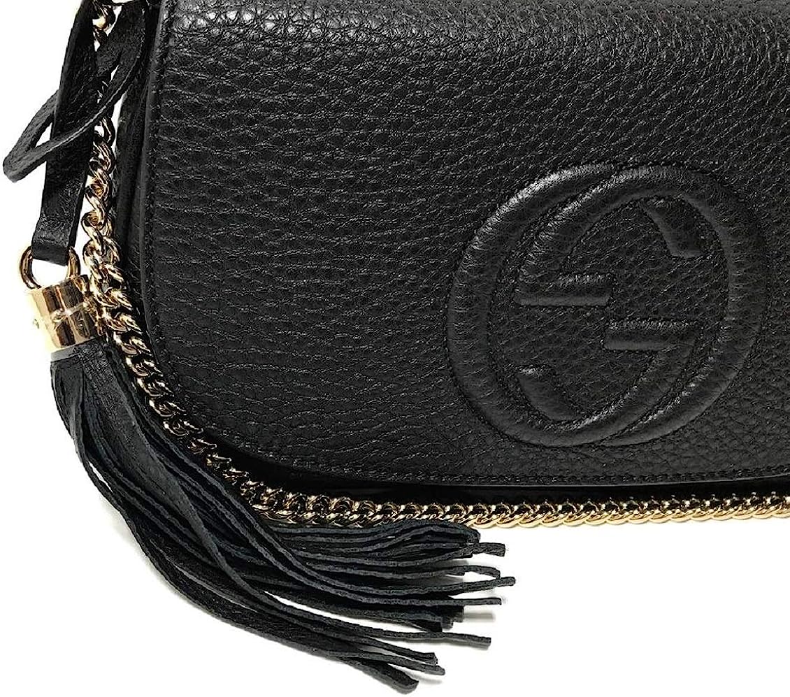 Gucci Soho Leather Flap Shoulder Bag Black Gold Tassel New Authentic