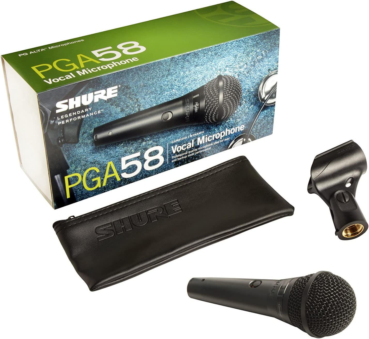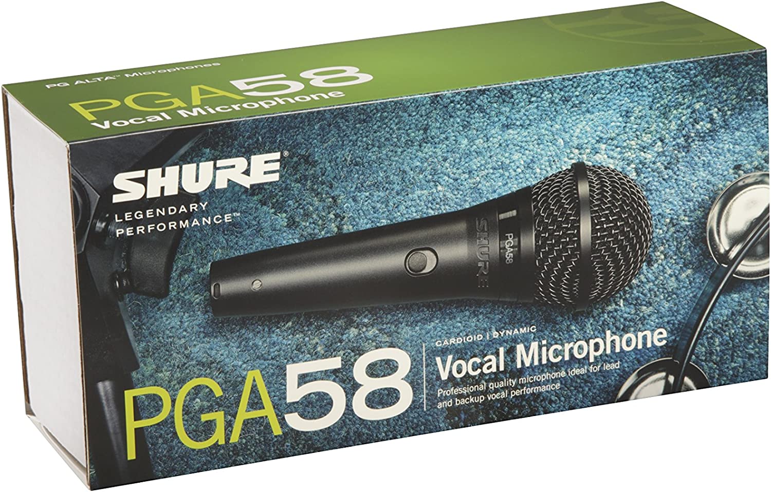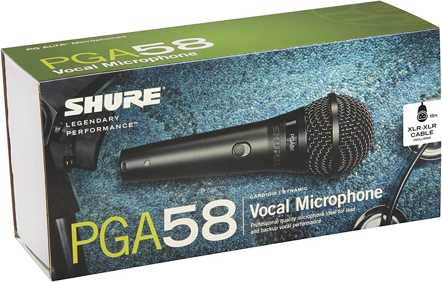 Shure PGA58 Dynamic Microphone - Handheld Mic for Vocals with Cardioid Pick-up Pattern, Discrete On/Off Switch, Stand Adapter and Zipper Pouch (PGA58-XLR)