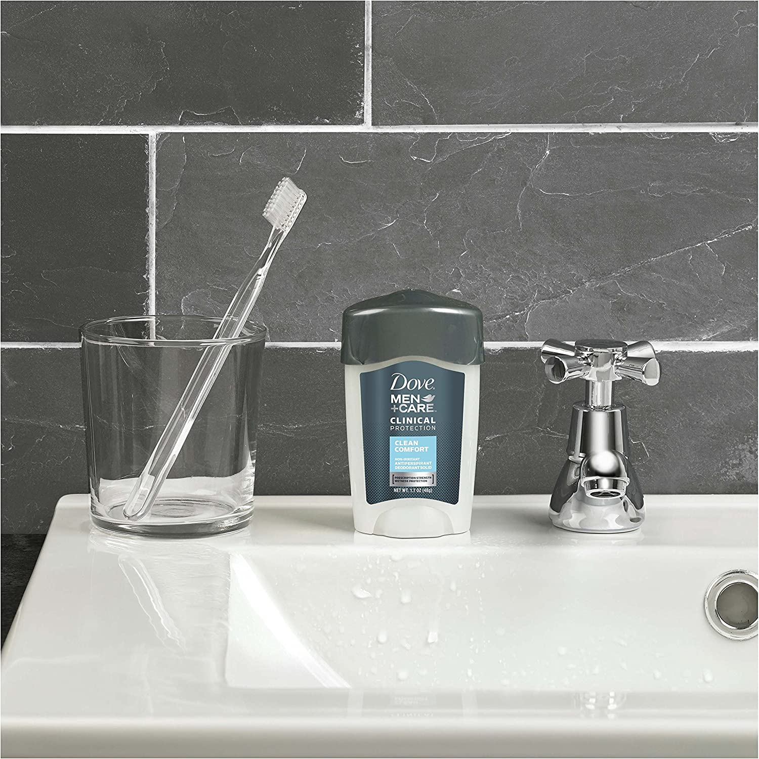 Are you looking for prescription-strength protection from sweat? Try Dove Men+Care Clean Comfort Clinical Protection Antiperspirant for a clinical strength Antiperspirant for men that will give you all day powerful protection. It delivers long-lasting protection against odor and wetness and, as part of the Dove Men+Care Antiperspirants & Deodorants range, it’s specifically designed to care for men’s skin. Its unique formula, with Dove’s ¼ moisturizer technology, gives you all the strength and care of a Dove Men+Care Antiperspirant. This clinical strength Antiperspirant for men helps to combat sweat and odor, and its subtle scent will leave you feeling fresh all day long. Swipe this Dove Men+Care Antiperspirant up and down on each armpit several times to dispense an even layer across your skin. Use it in the morning or, for maximum protection, apply at night before going to bed. The clinically-tested soft solid formula works overnight to form a deep level of protection that lasts throughout the next day. It’s tough on sweat, not on skin. The next time you need prescription-strength protection against sweat without compromise, reach for Dove Men+Care Clean Comfort Clinical Protection Antiperspirant: a clinical strength Antiperspirant for men.