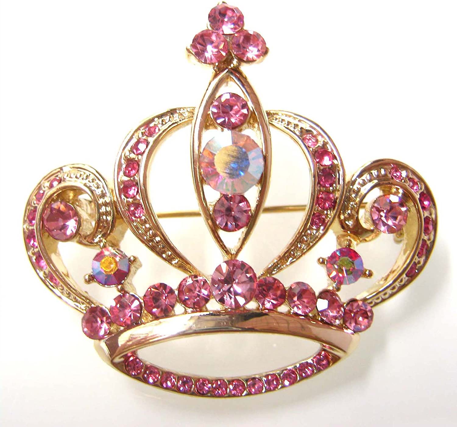 Navachi 18k Gold Plated Multicolor Crystal Royal Crown Brooch Pins