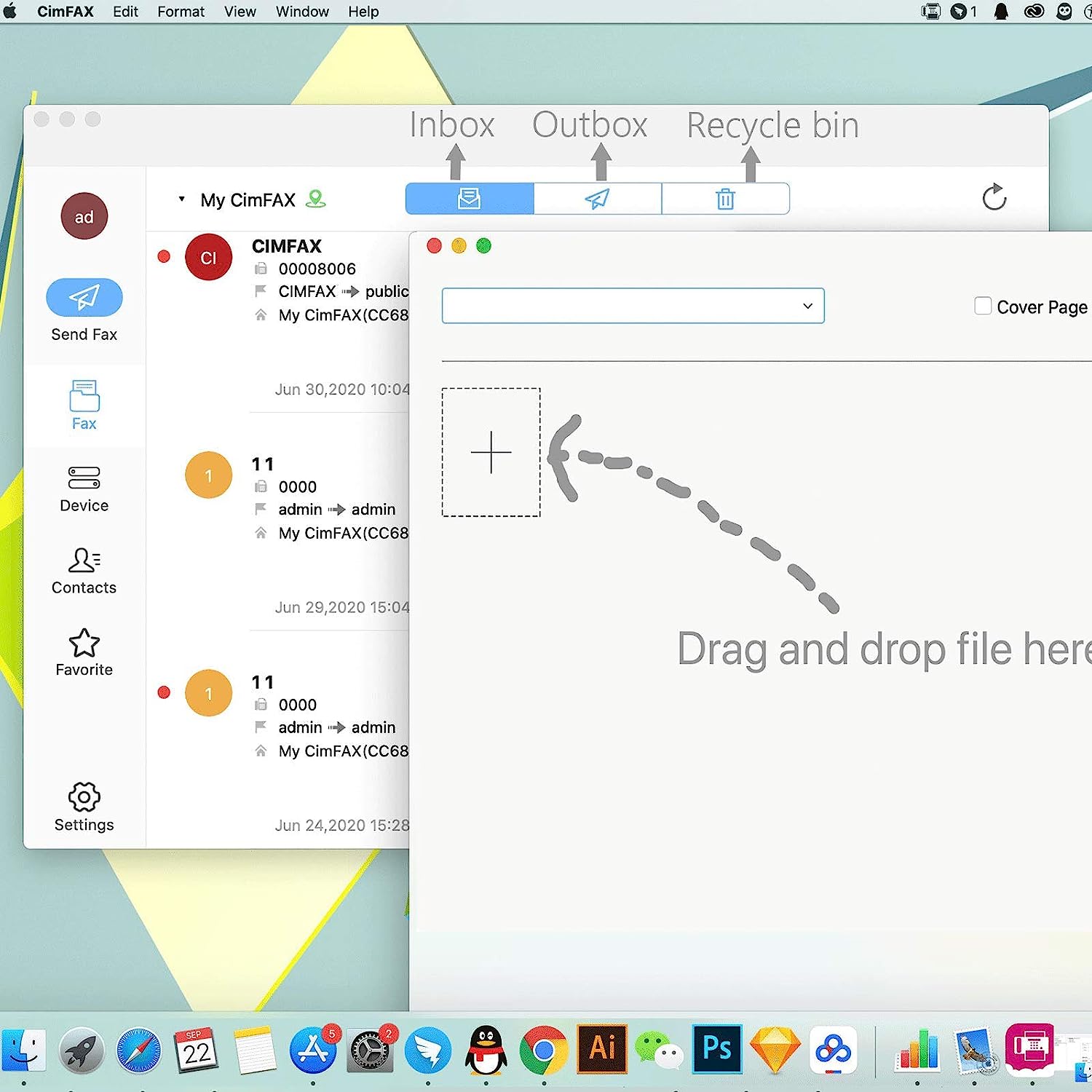 • Drag and Drop to send fax on Mac computer. Pop-up notification for incoming fax.