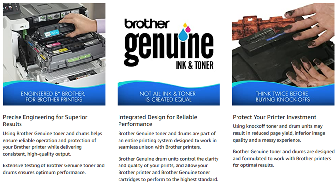 Brother is dedicated to keeping the environment safe and produces our replacement products in ISO-certified factories. We offer several environmentally-responsible ways for our customers to dispose of their Brother branded products once they have served their purpose. Brother Genuine replacement supplies are backed by Brother’s ‘At Your Side’ Limited Warranty and customers enjoy lifetime tech support for the life of their printers. The Brother DR221CL Drum Unit is for use with MFC9130CW, MFC9330CDW, MFC9340CDW all-in-one machines; Brother HL3140DW, HL3170CDW and HL3180CDW color printers.