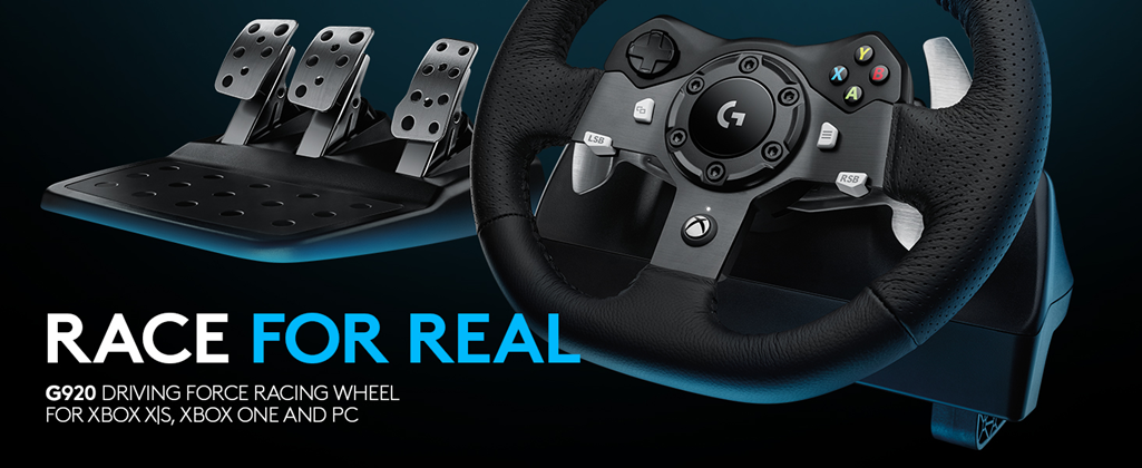 G920 Driving Force is the definitive sim racing wheel for the latest Xbox One and PC titles. With realistic dual-motor force feedback and helical gearing for quiet, smooth steering. On-wheel controls and paddle shifters are easy to access so you can make crisp, precise gear transitions. The separate pedal unit gives you natural, responsive control, with a nonlinear brake pedal that mimics the feel of high-performance vehicles. Driving Force is built for comfort and durability with hand-stitched leather and stainless steel components. Built-in clamps and bolt points keeps Driving Force mounted securely to a table or racing rig, minimizing shifting or wobbling during aggressive maneuvers.