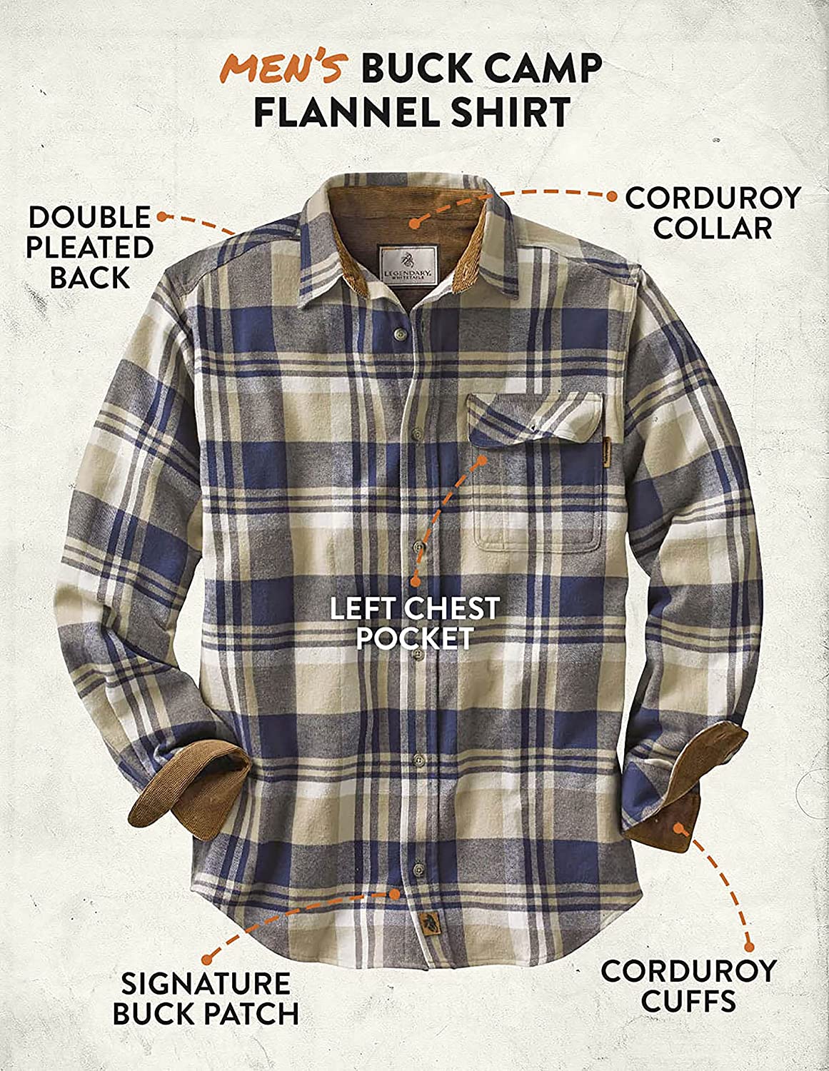PERFECT WEIGHT: Weighing in at 5.1 ounces, the Buck Camp Flannel Shirt is the perfect weight to be worn alone or layered, indoors or outside; you're gonna love this comfortable brushed cotton flannel shirt
