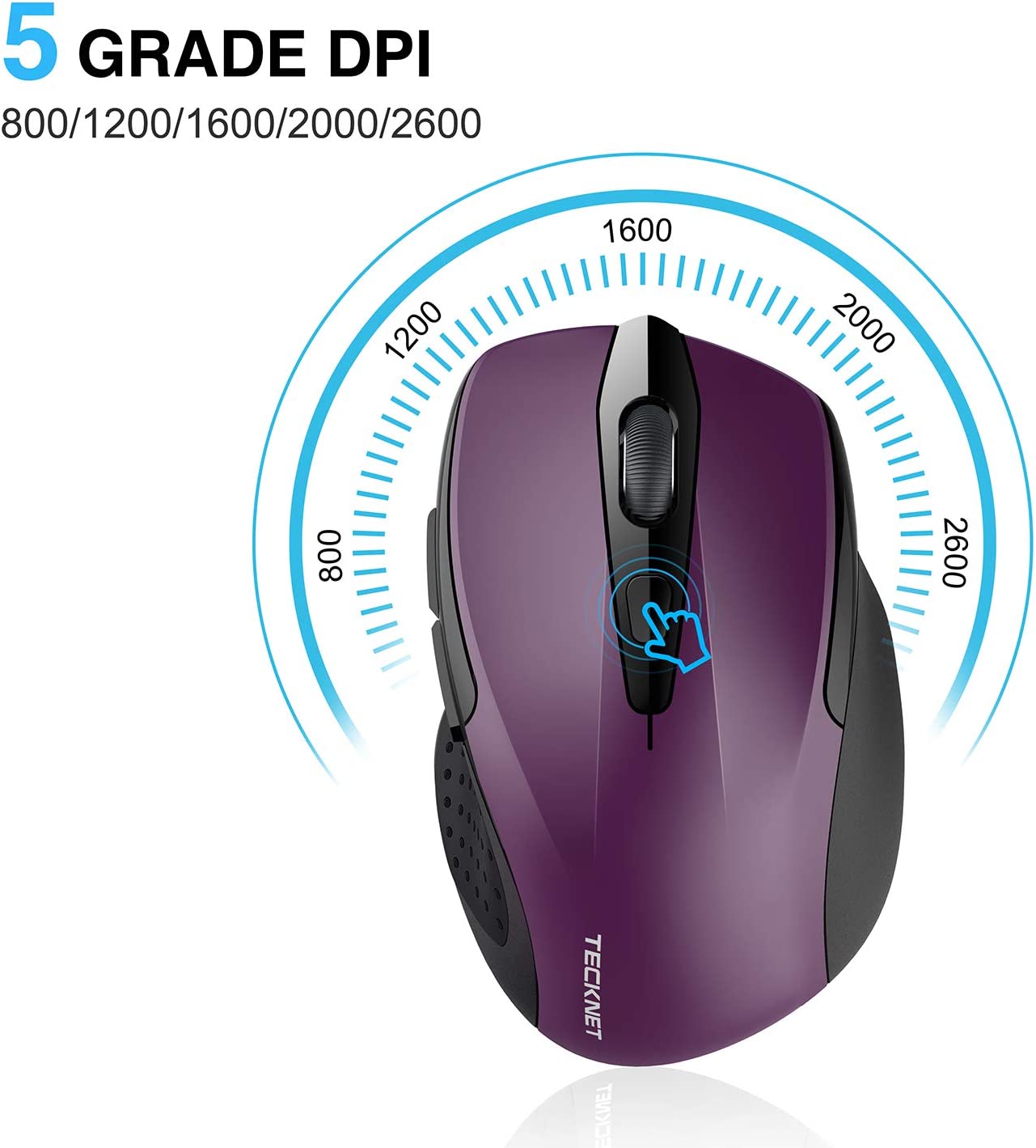 Plug & Play: Wireless mouse comes with a tiny USB Nano receiver (stored within the back of the mouse), plug it into your PC, and then forget it. With 5 adjustable DPI levels (2600-2000-1600-1200-800), you can freely choose your cursor speed.