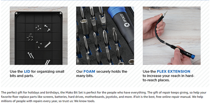 Designed by engineers and repair experts based on thousands of repair guides, the Mako Driver Kit is the perfect foundation needed for basic device repair. We chose only the best, most-common drive types, so you have the essentials with no fillers and no duplicates. Only the bits you need to repair tech like iPhones, game consoles, laptops like MacBooks and Chromebooks, desktop computers like Mac mini, ASUS, and Dell—plus upgrade and maintain your PC, watch, controllers, even jewelry and eyeglasses.