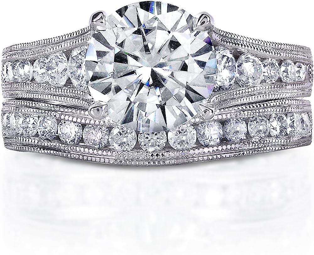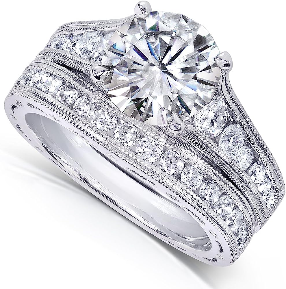 Kobelli Forever One (D-F) Moissanite Channel Bridal Ring Set 2 7/8 CTW 14k White Gold
