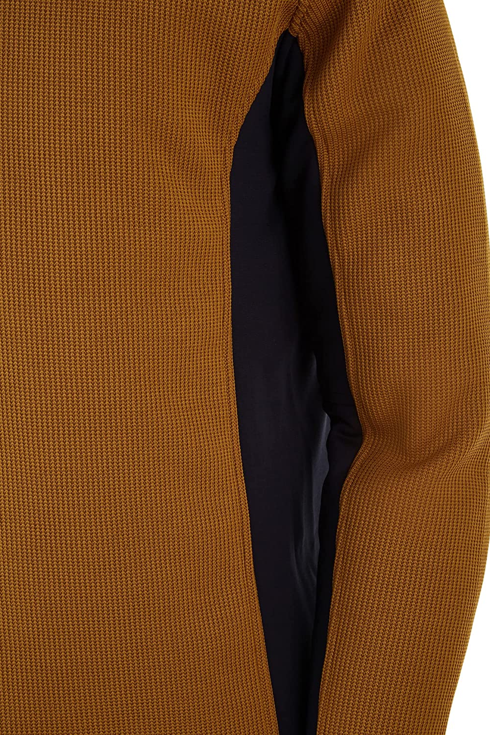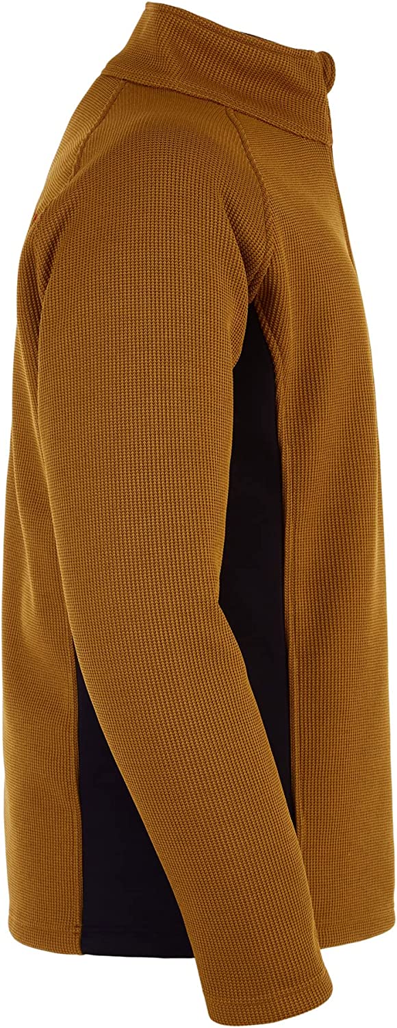 • Mixed-texture pullover featuring zipped mock neck with brushed microfiber inner and contrast panels at underarm and sides