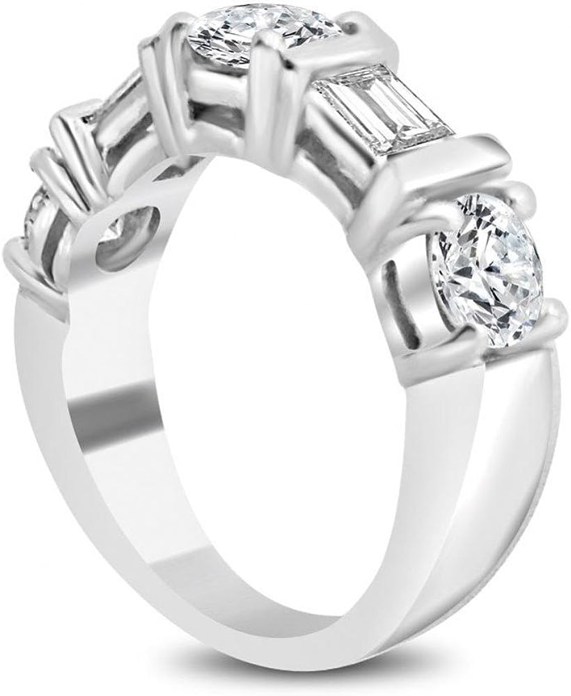 Madina Jewelry 1.54 ct Round and Baguette Cut Diamond Wedding Band Ring in 18 kt White Gold