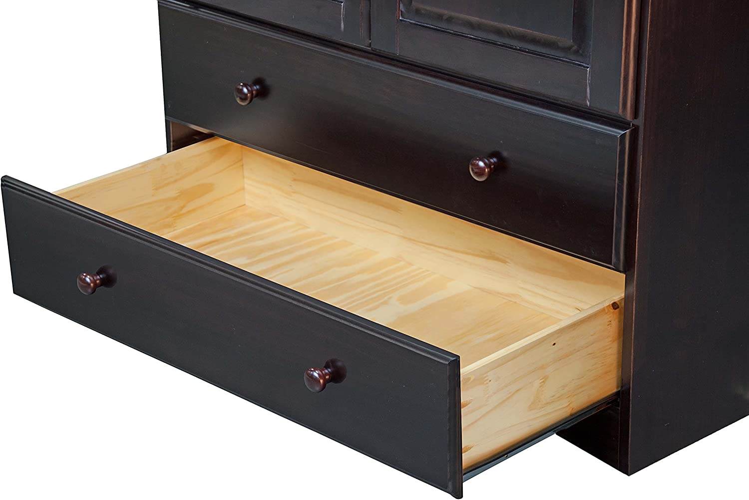 Palace Imports 100% Solid Wood Smart Wardrobe/Armoire/Closet, Java Color, 40" W x 72" H x 21" D, 1 Clothing Rods, 1 Lock, 2 Drawers Included