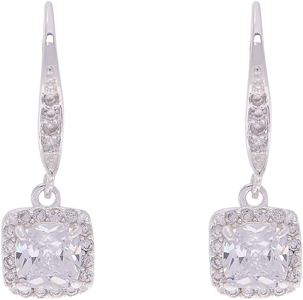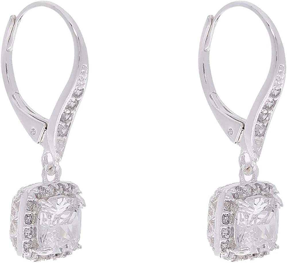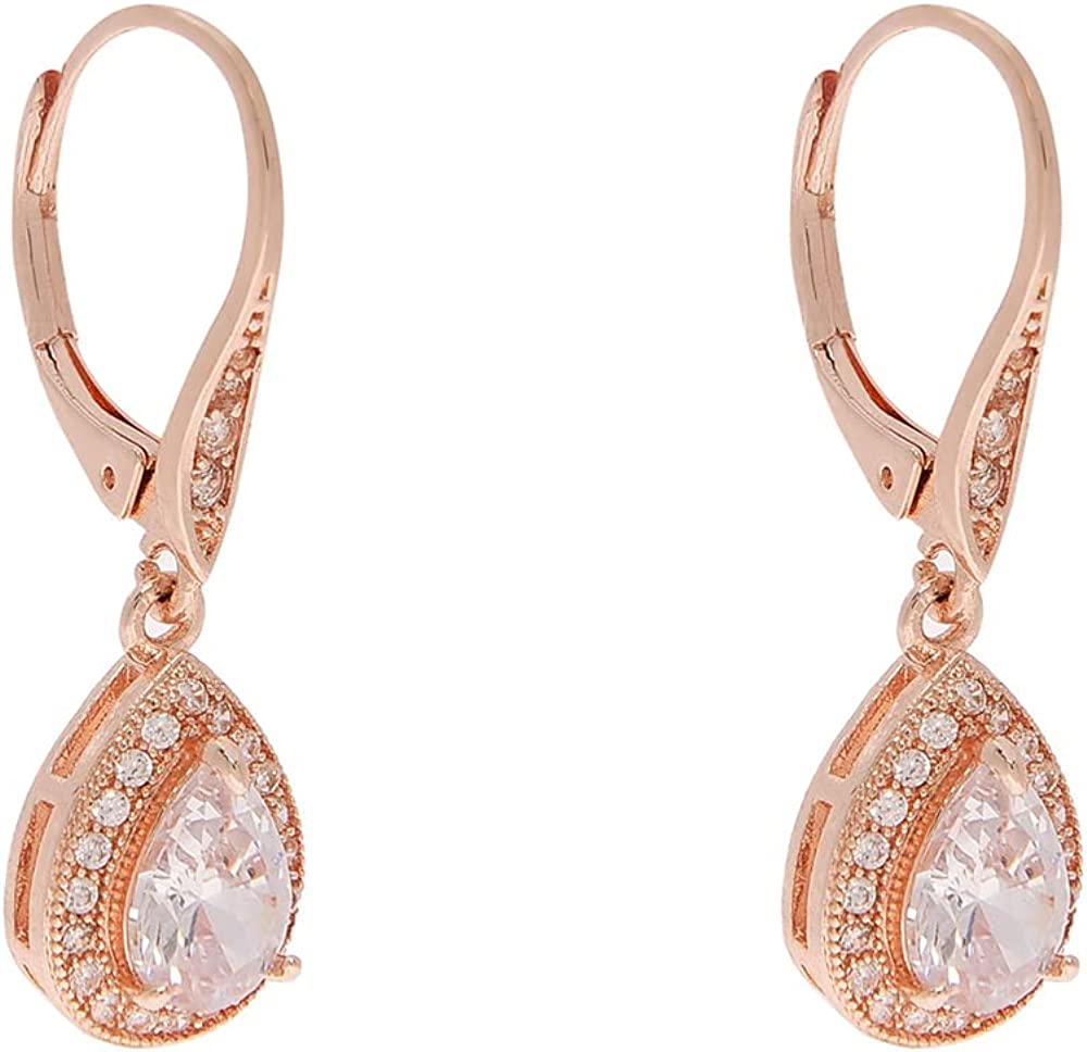 WeimanJewelry White Gold/Gold/Rose Gold Plated Women Cubic Zirconia Round Cut CZ Bridal Necklace and Drop Earring Set for Bride Wedding