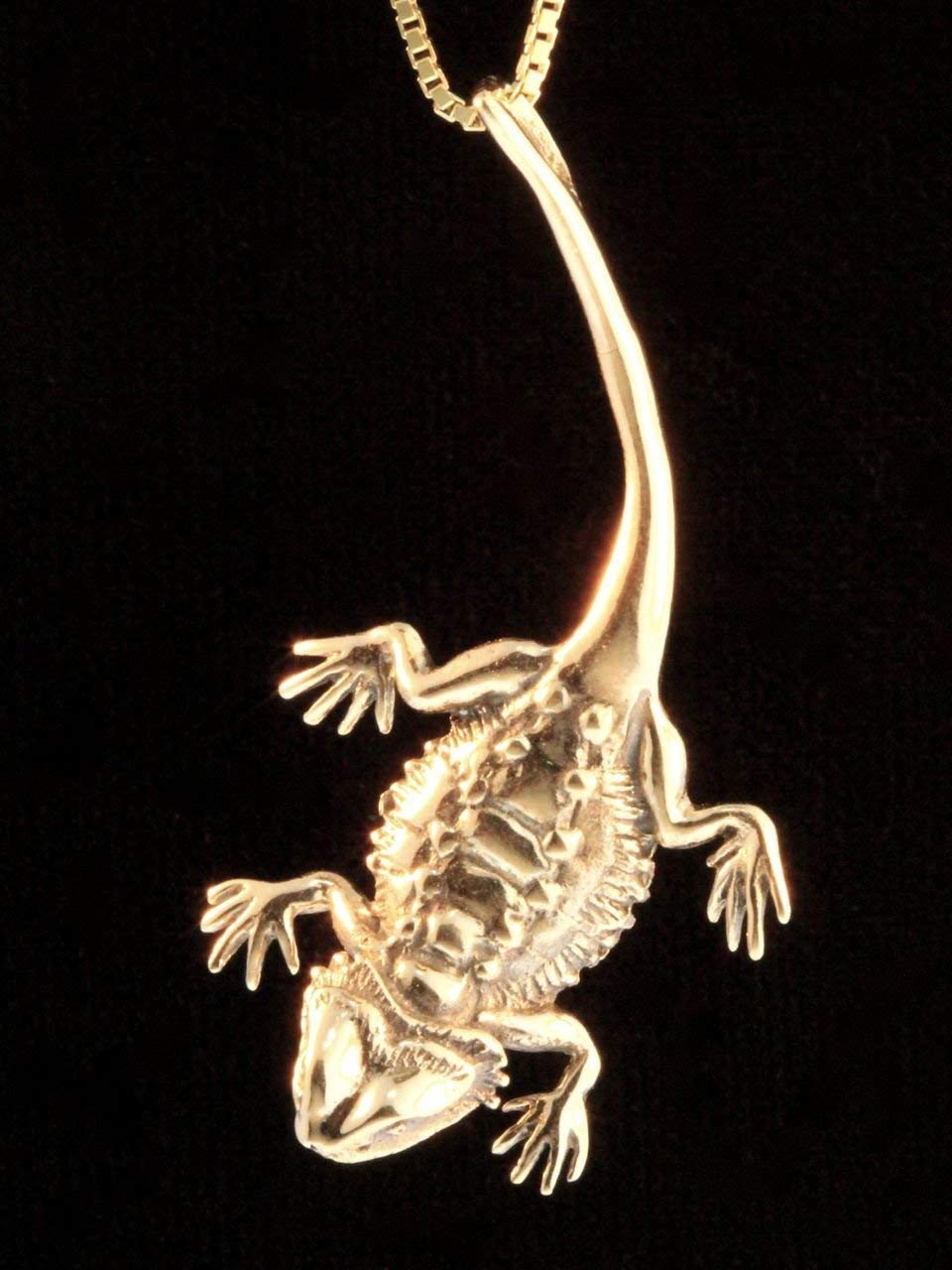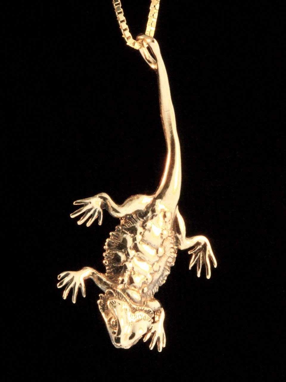 Bearded Dragon Charm Necklace 14k Gold Reptile Jewelry