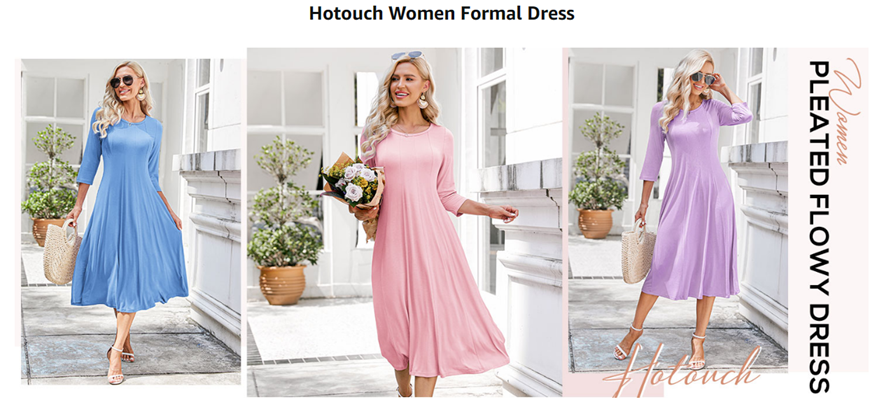 Hotouch Women's 3/4 Sleeve A-line and Flare Midi Long Dress