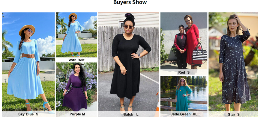 • 【Features】: A line, Round neck ,casual style,3/4 sleeve, loose fit ,swing hem and pleated t-shirt flowy dress, simple and classy design; we love loose long dresses because they make us look more aristocratic and elegant.
