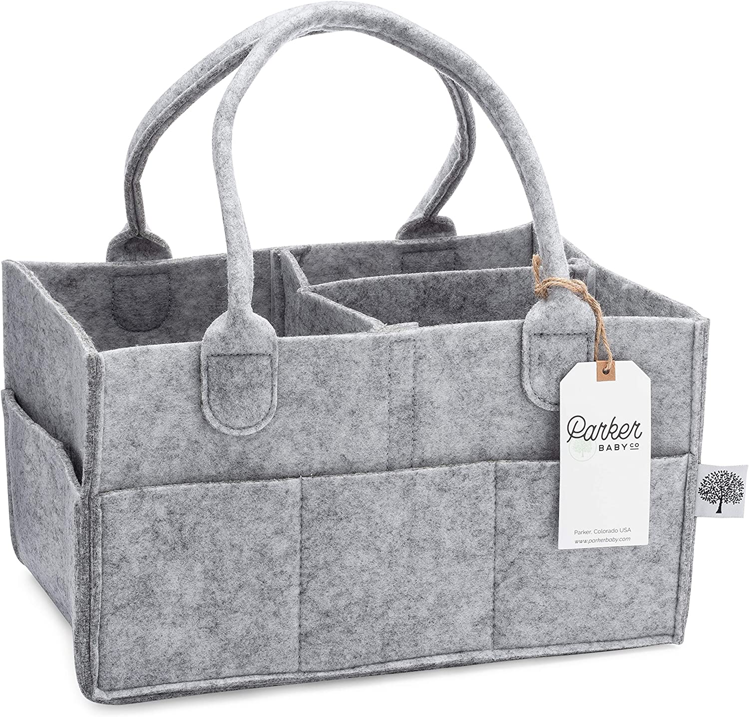 ESSENTIAL STORAGE BASKET FOR NEWBORN PRODUCTS - The Parker Baby Diaper Caddy (patented) is versatile enough for all that baby stuff: baby toys, diapers, baby clothes, baby wipes, bibs, onesies, baby toys, cloth diapers, changing pads, medicine, burp cloths and other baby essentials! Large enough for dozens of diapers and most wipes dispensers.