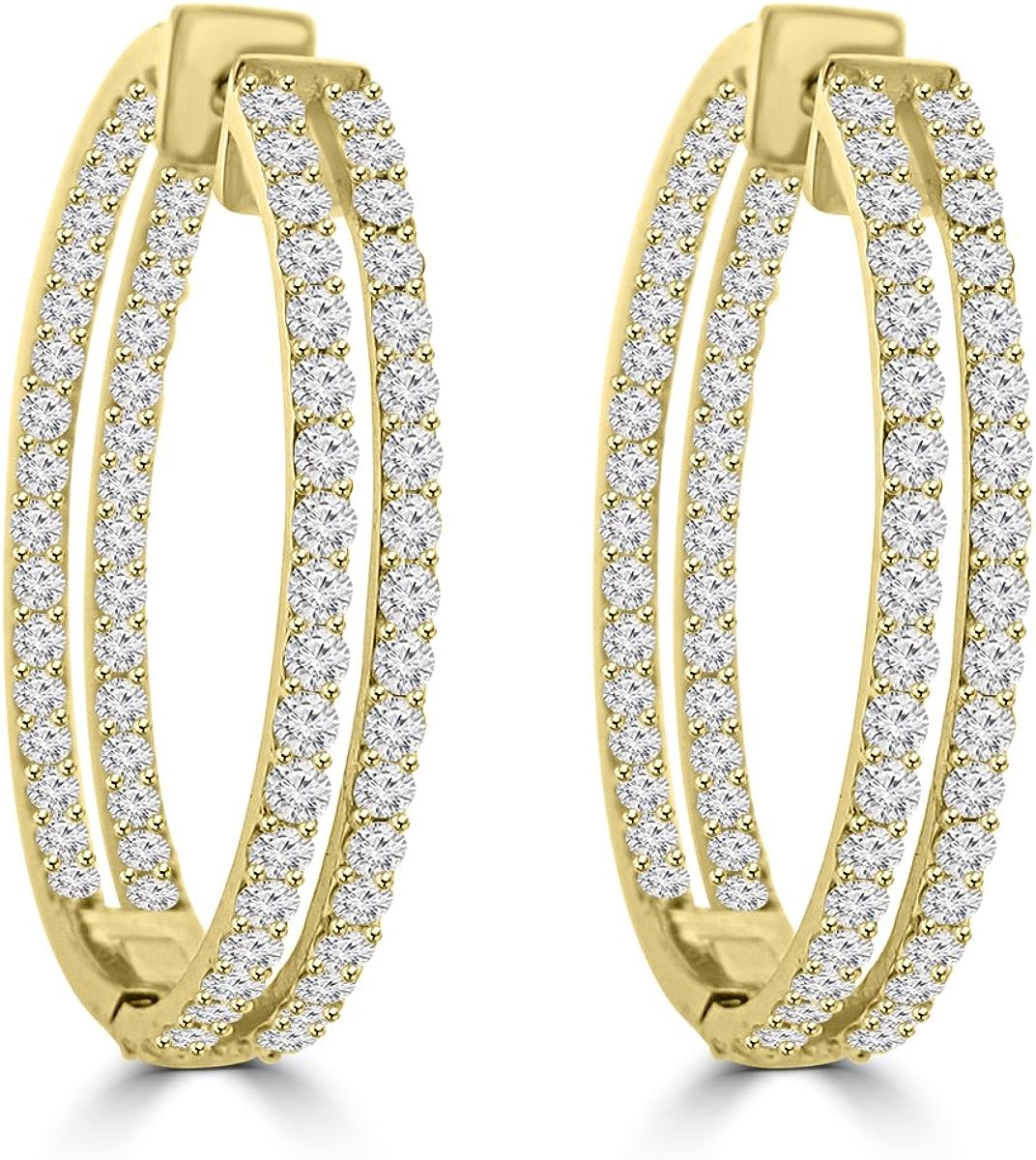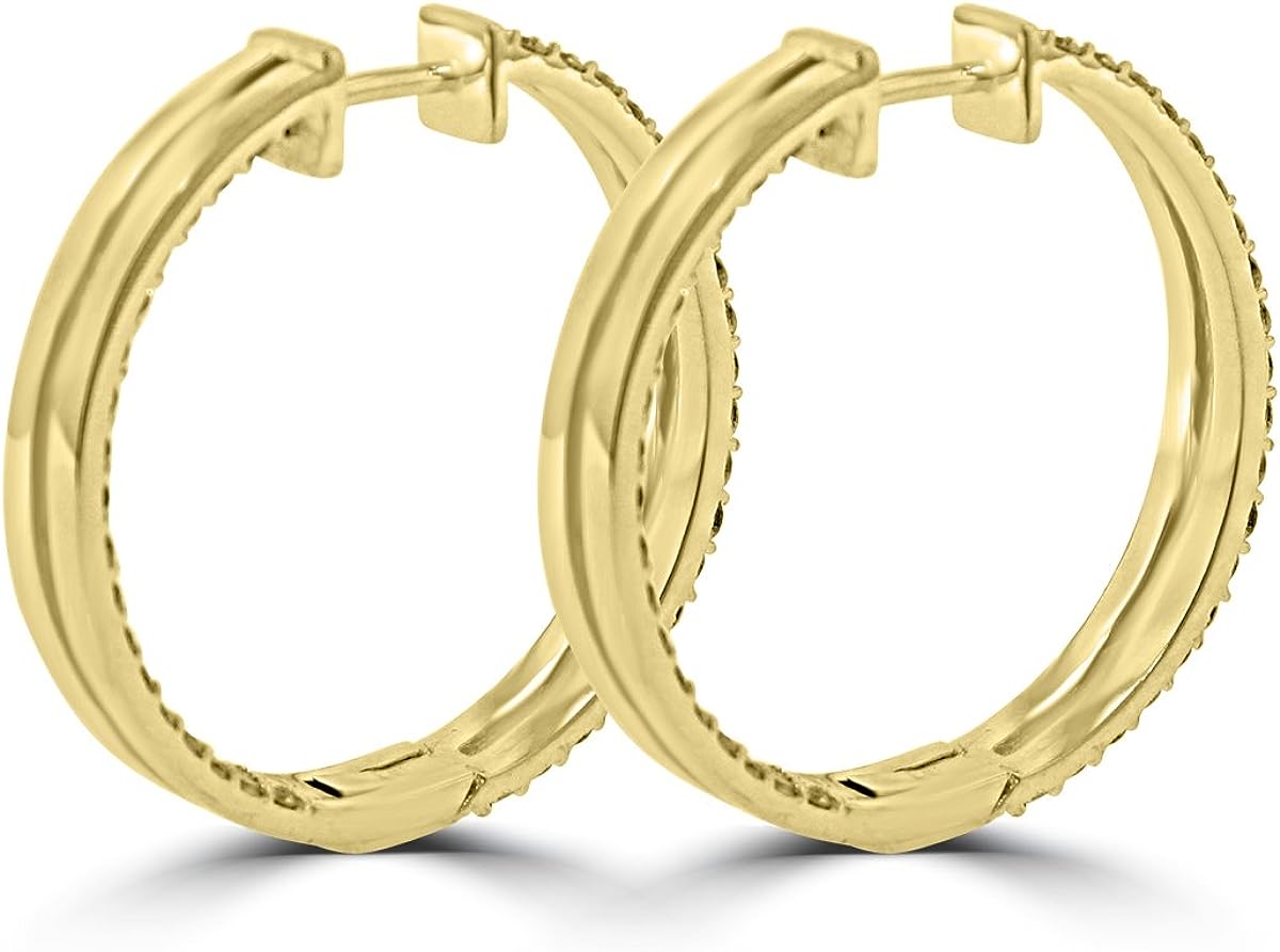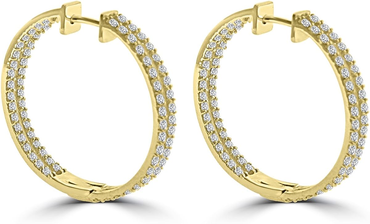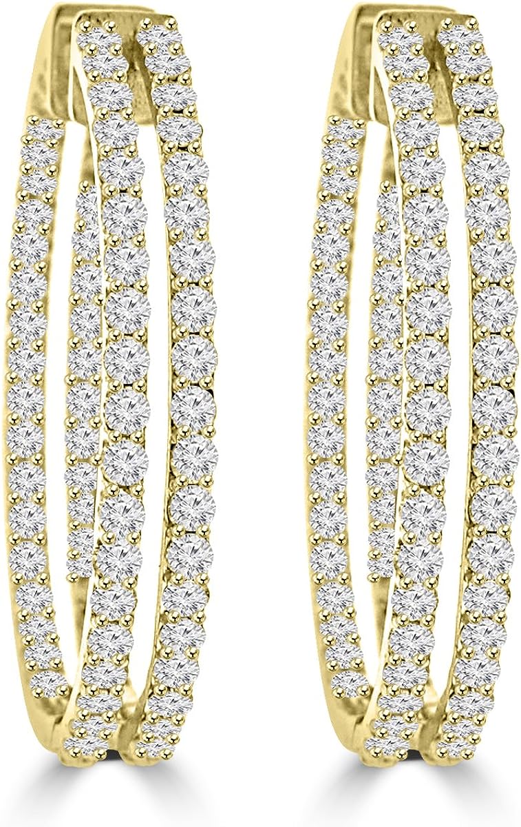 Madina Jewelry 5.26 ct ttw Ladies Round Cut Diamond Inside Outside Hoop Earrings in 14kt Yellow Gold