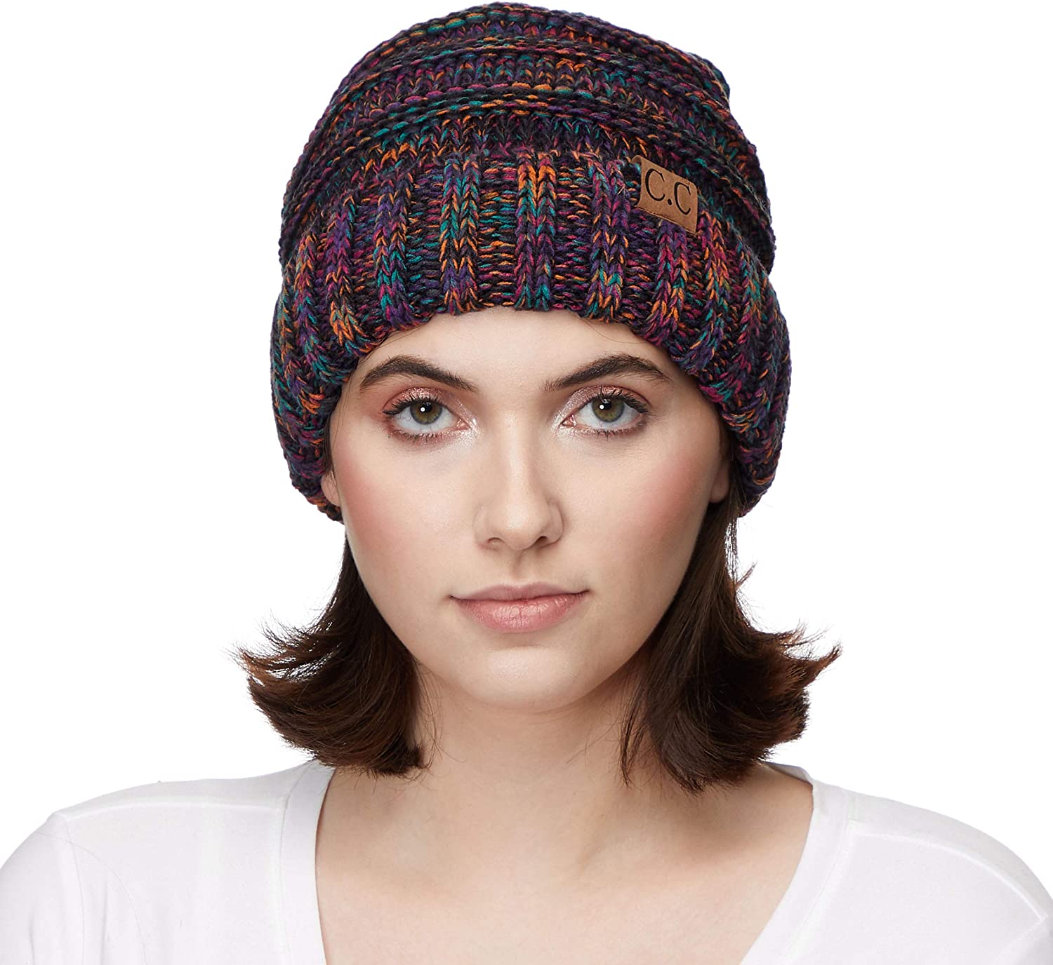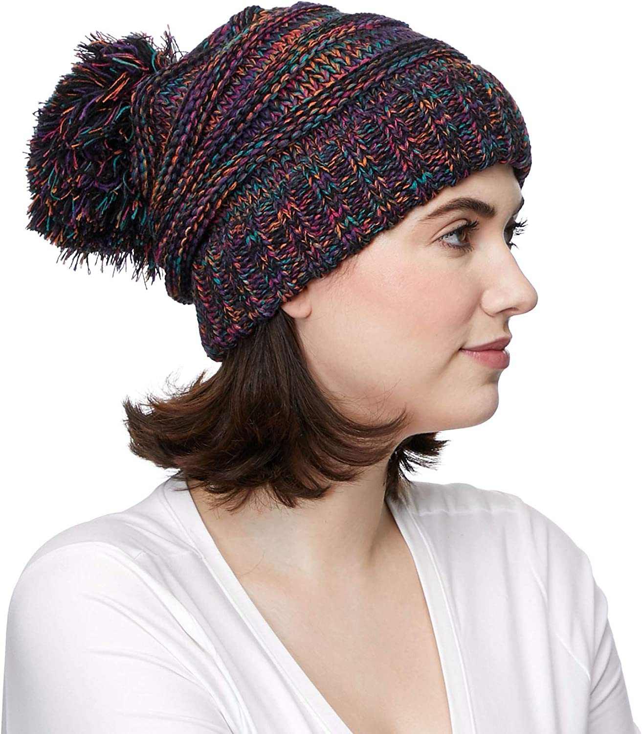• Chunky Multi Color with Knit Pom Unisex Knitted Beanie.