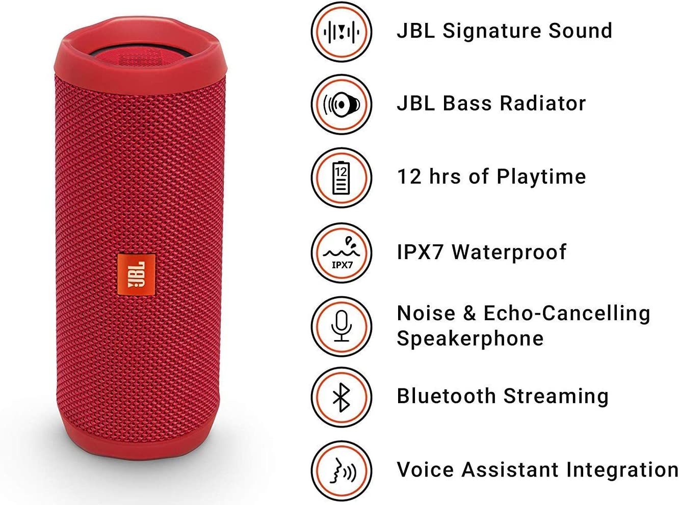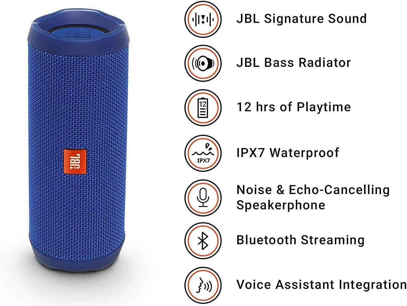 • Waterproof & durable - No more worrying about rain or spills: Flip 4 is completely waterproof—you can even submerge it in water. Plus, the improved, durable fabric material and rugged rubber housing protects the speaker on your outdoor adventures.