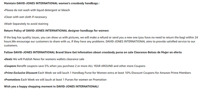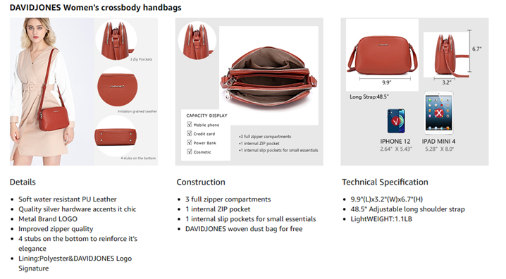 BRAND:DAVIDJONES purses for women Designed in French since 1987 and Distributed in more than 100 countries.Great stylish and designer handbags for women and girls.Excellent craftsmanship and refined good quality leather like PU women purse.Decent quality women handbags with affordable price.