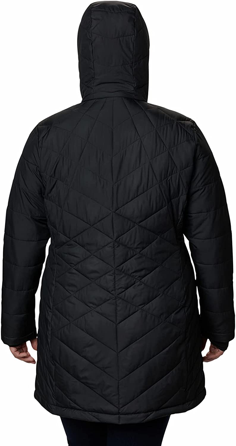 The Columbia Women's Heavenly Long Hooded Jacket combines stylish urban looks with technology to keep you warm and dry. Made for women, this great fall and winter jacket features a long silhouette with a modern fit and drop tail. Crafted of a water resistant shell, lined with Omni-HEAT reflective lining, along with a yummy plush fleece lined collar, quality assembly, construction, and stitching, the advanced technology infused into this jacket will instill a sense of confidence when the weather turns super blustery and cold. Unique to this jacket, the sleeves have built-in thumb holes and comfort cuffs to provide a sense of control and warmth to your arms and hands. The two-way main front zipper provides up/down options for flexibility of movement and warmth control when needed, while the zippered side pockets keep your small items secure (including your hands when the outdoors get extra cold). The water resistant fabric keeps you protected during unexpected downpours. This women's winter jacket is offered in multiple colors and sizes. Extended sizing available. Active and Regular Fit. To ensure the size you choose is right, utilize our sizing chart and the following measurement instructions: For the sleeves, start at the center back of your neck and measure across the shoulder and down to the sleeve. If you come up with a partial number, round up to the next even number. For the chest, measure at the fullest part of the chest, under the armpits and over the shoulder blades, keeping the tape measure firm and level.