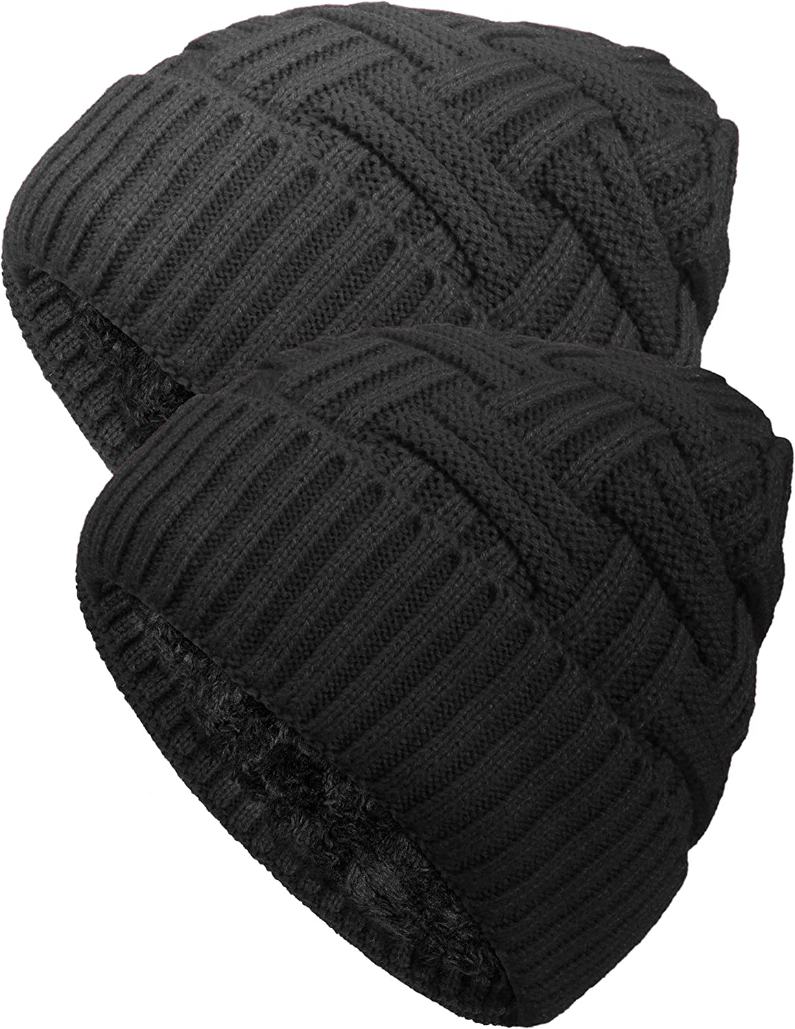 Loritta 2 Pack Winter Beanie Hat Set Warm Knitted Slouchy Thick Baggy Beanie Skull Cap for Men Women Gifts