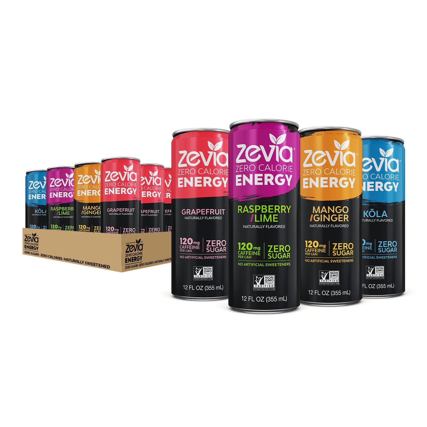 • Clean Caffeine: Looking for an extra boost of caffeine; Power Up With Zevia Energy in Mango Ginger, Grapefruit, Raspberry Lime and Kōla; the zing, zest, flavor and caffeine in this knockout combo will be sure to get you through your most sluggish days