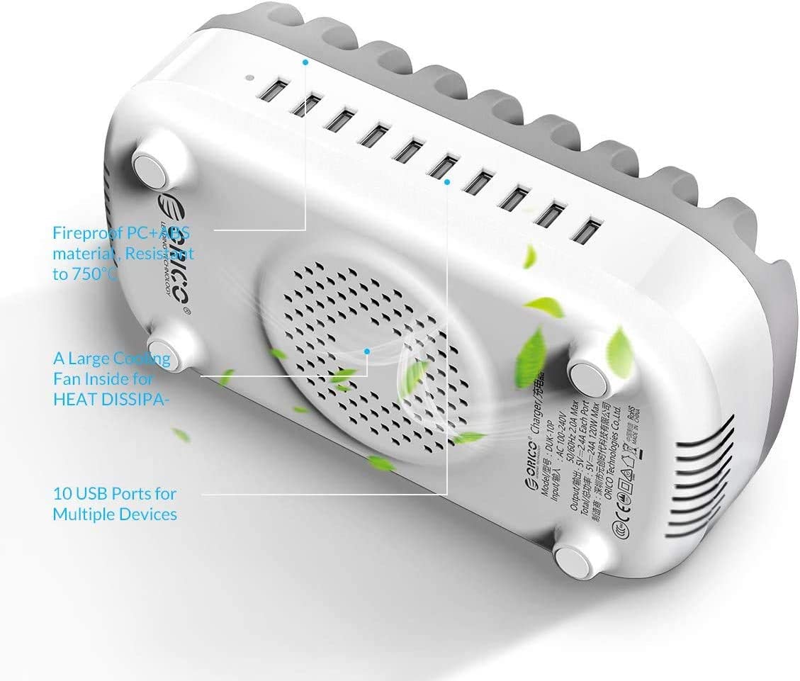ORICO 120W Charging Station for Multiple Devices - 10 USB Smart Ports - Auto Temperature Control System - Charger Organizer Docking Station for Cell Phones, Tablets and Others (Cables not Included)