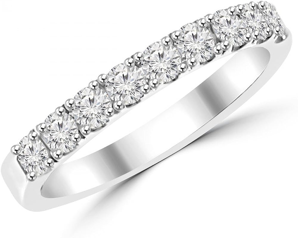 Madina Jewelry 0.72 ct Ladies Round Cut Diamond Wedding Band in 14 kt White Gold