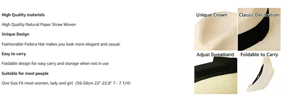 • One Size fit most lady women,hat circumference 22.5" ; brim 2.9" ; You can adjust the size of the hat through the rope inside in the hat.