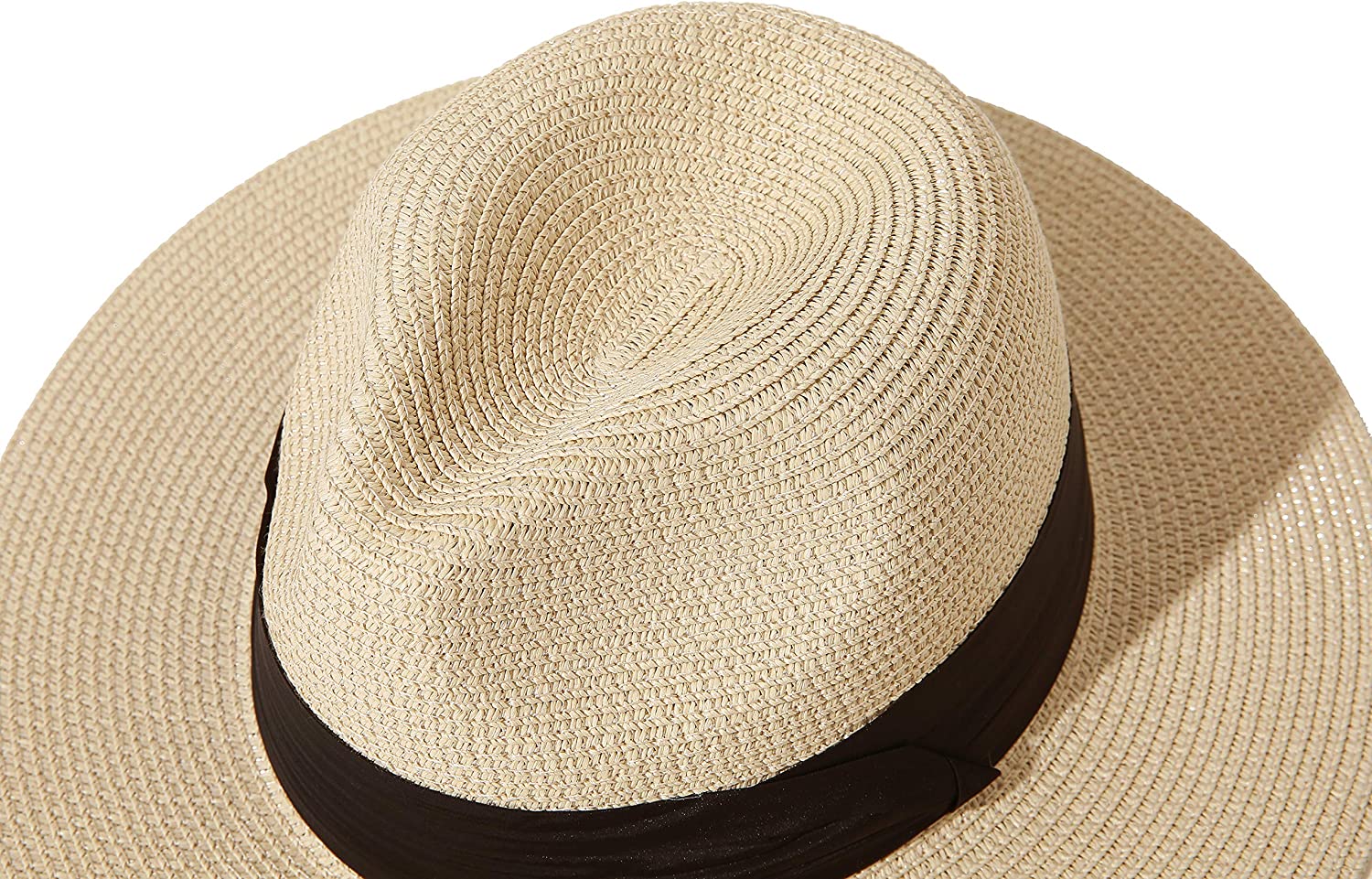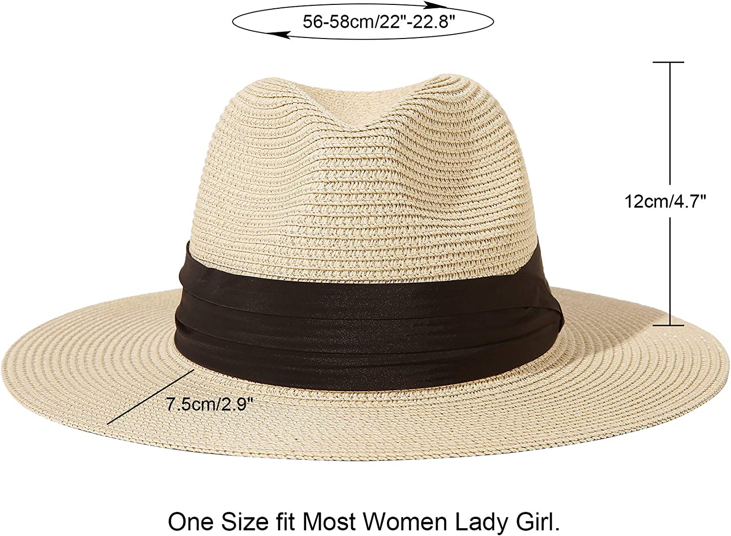 Lanzom Women Wide Brim Straw Panama Roll up Hat Fedora Beach Sun Hat UPF50+