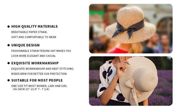 - Foldable and packable:The straw sun hat can be folded up and put into suitcase or handbag for beach holidays, cruise, travel, safari or other summer outing.
